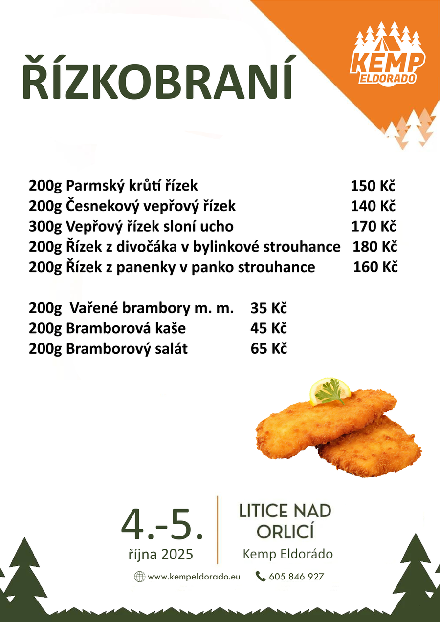 Úvod > O obci > Aktuality > Pozvání na řízkobraní Kemp Eldorádo 4.-5. 10.2025
